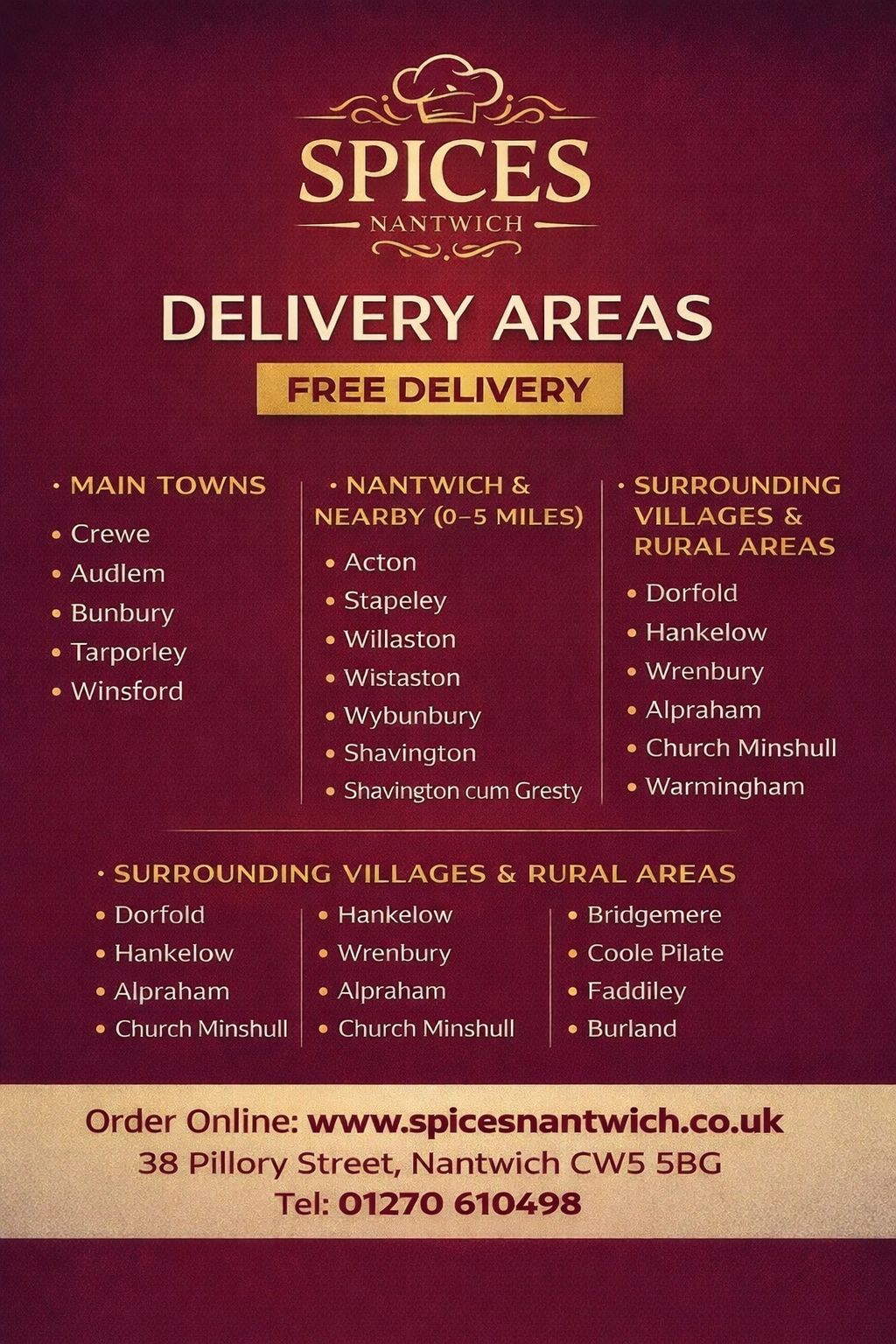 Delivery Areas (Free Delivery - limited time only)